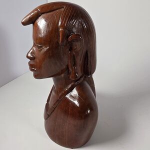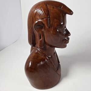 Pre owned Very Good Condition Vintage African Tribal Head Bust Man Hand Carved Wood Scultpture. Intricate details and craftsmanship. This piece captures the essence of African culture and tradition, making it a unique collectable item. Handmade Quality. See images all images.