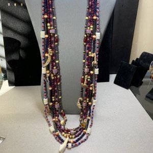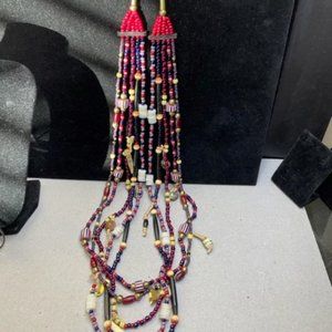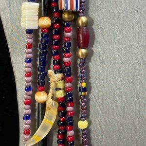 African Trade Beads 35" In Length 5 Strands of Various Beads and Charms