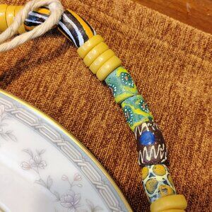 African Trade Beads Strand Multi Color Glass Tube Rare Patterns Necklace