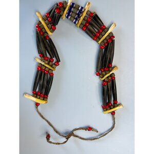 African Tribal Buffalo Bone & Murano Beads Necklace 22" Multi-Strand Handmade Et