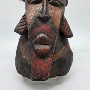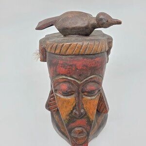 African Tribal Handcarved Wooden Mask With Bird Sculpture Decoration