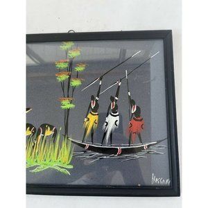 African Tribal Hunting Water Boat Landscape Scene Painting Signed. This item is preowned and in good condition. Please see photos as they provide best description and feel free to message with any questions you may have. Measures 9 3/4 x 12 3/4.