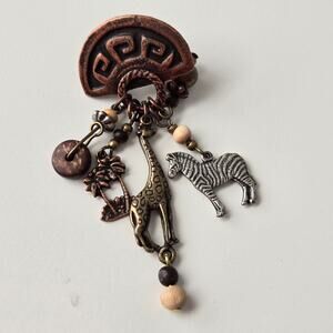Add a touch of the wild to your jewelry collection with these unique bronze dangle earrings! Featuring a charming African safari theme with a giraffe, zebra, and palm tree, these earrings are perfect for adding a touch of adventure to any outfit.