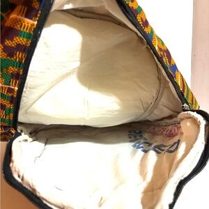 Stylish and vibrant backpack featuring a multicolor pattern. Perfect for daily use and travel. African unisex Ankara handmade with bold colors & patterns ideal for school work every day use the bag have 4 pockets to hold all supplies needed for the day adjustable strap hight 17” 13” depth 3” strap drop 41” adjustable