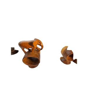 African hand Carved Teak Wood Napkin Rings, Set of 6