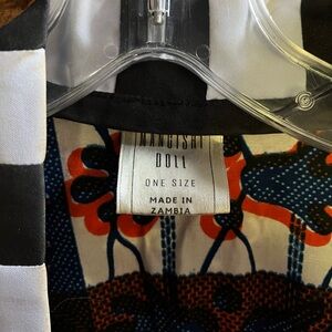 Mangishi Doll Kimono. Made in Zambia. One size. Indigo blue, orange black, and white colors. Short sleeve. Long, ankle length. 100% cotton blend. New , no tag. Very unique.
