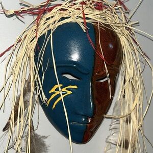 Mask is signed (I cannot break the artist name.) has a leather strap on the back for easy hanging. I will tissue and bubble wrap heavily upon purchase!! Ready to ship same business day, smoke free.