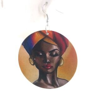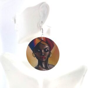 Ladies beautiful lightweight multicolored graphic hand painted African Lady Earrings. Excellent condition. New with tags. Made with hypoallergenic nickel free metal.