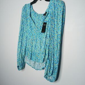 New With Tag Afrm Soni Ruched Balloon Sleeve Crop Top Size Small.