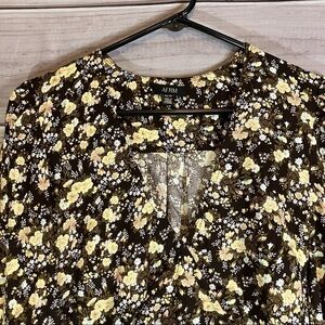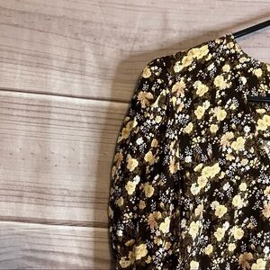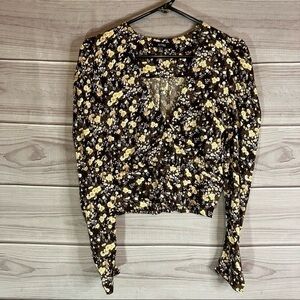 In excellent used condition no rips, tears or stains. Floral print top, long sleeves, cropped length, surplice v-neckline, long puff sleeves, banded waist, smocked back and all over floral print.