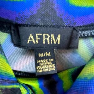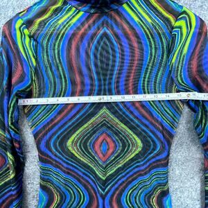 Afrm Zadie Top Womens M Psychedelic Turtleneck Thumb Hole Festival Mesh Sheer
