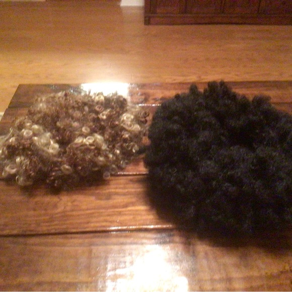 Two Afro wigs for Halloween costume, one is black the other brownish blonde in good condition