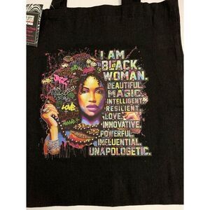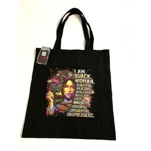Ladies super cute black canvas multicolored Afrocentric graphic Totebag. New with tags. Approximately 14" width 16" height.