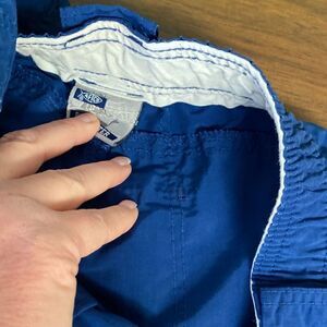 Good condition other than what appears to be a grease spot on a back pocket as seen in photo. I have not tried to get it out. Smoke free home. Inseam is about 5”