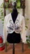After Dark: Off White Formal Beaded and Embellished Cardigan with Navy Dark Blue Floral Pattern