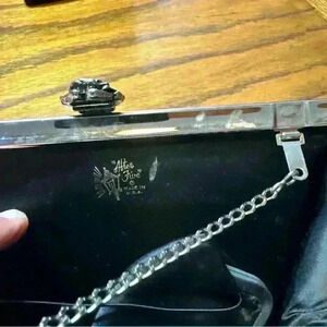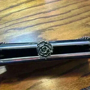 After Five Vintage Patent Leather Clutch Silver Rose VTG