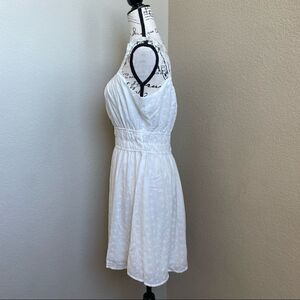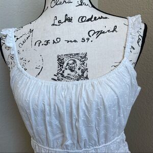 After Market White Broderie Eyelet Mini Dress with Ruffles and Smocked Waist M