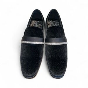 After Midnight Mens Black Velvet Loafer with Rhinestones Prom Slip-On Shoes $65