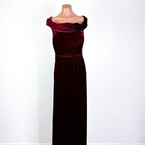 After Six 1554 Velvet Off Shoulder Bridesmaid Gown Dress Cabernet Red 22-W NWT