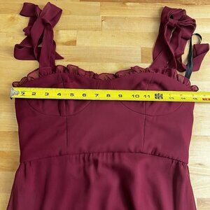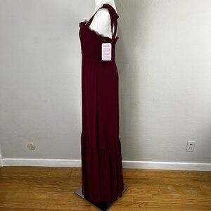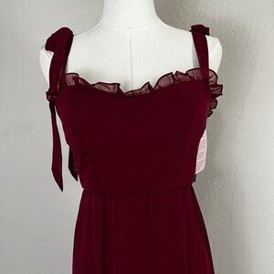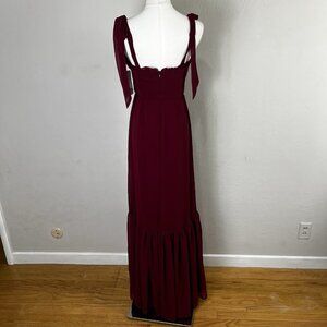 After Six 1570 Size 2 Burgundy Tie-Shoulder Bustier Ruffle Hem Maxi Dress NEW