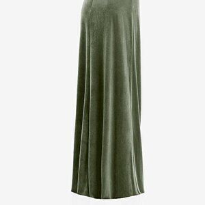 Perfect for weddings and formal events, this romantic full-length velvet dress is soft and sleek. Designed with midriff side cutouts and slim straps, this dress flows into a classic A-line skirt for an alluring silhouette.
