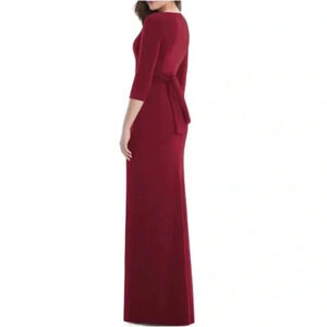 Wrap Crepe Column Gown, 3/4 length sleeves