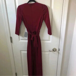 After Six Burgundy Red Vneck Crepe Sleeve Slit Front Bridesmaid Dress Size XXS