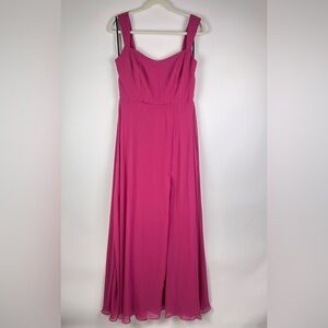 Command attention on the dance floor with this sweet and sassy lux chiffon dress. A daring slit and soft, low sweetheart neckline add just enough edge to this tasteful maxi dress, featuring contoured straps, a natural waist, and a modified circle skirt.