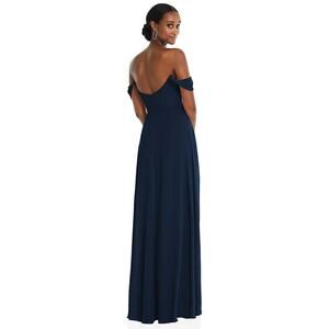 After Six Lux Chiffon Midnight Blue Off-The-Shoulder Basque Neck Maxi Dress Size 4 NWOT