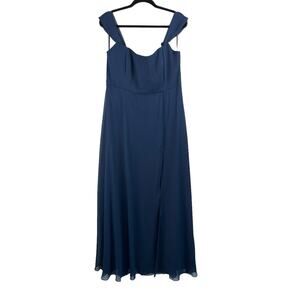 After Six Chiffon Midnight Blue Off-The-Shoulder Basque Neck Maxi Dress 4 NWOT