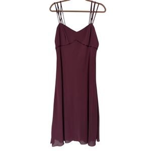 After Six Cocktail Midi Dress Women’s Size 12 Burgundy Aubergine Rare. Excellent condition. No signs of wear. Flowy, romantic and perfect for bridesmaids, prom, ring dance or other special occasions. Empire waist, triple spaghetti straps on each shoulder, back zip closure, lined. 100% Polyester, Nu-Georgette & matte satin fabrication. Armpit - Armpit 37", Waist 34", Length 46". Fast shipping.