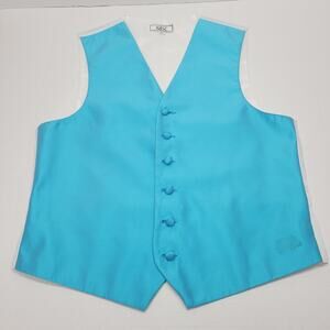 After Six Formal Vest Bright Turquoise Blue Satan Wedding Prom Mens Size Medium