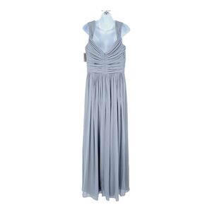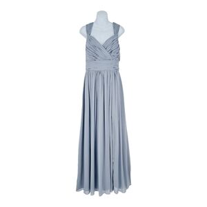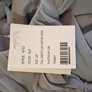 After Six Full Length Draped Front Slit Lux Chiffon Dress in Platinum Size 14
