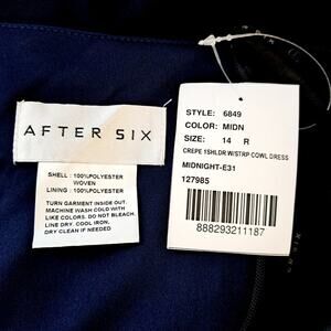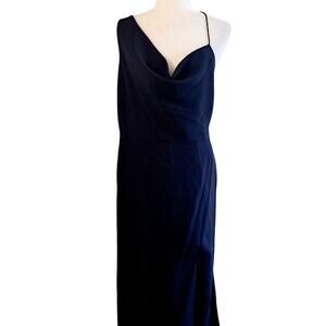 After Six one shoulder crepe dress. Cowl neck. Side slit. Hidden back zipper. Lined. NWT.