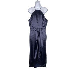 After Six Halter Midi Dress With Draped Tulip Skirt In Midnight Navy Size 16