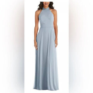 NWT After Six High Neck Halter Backless Maxi Dress in Mist blue 1545