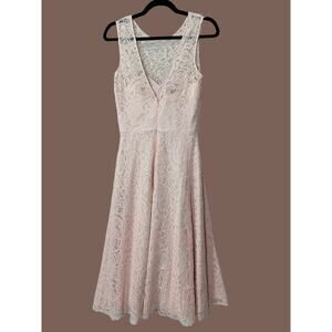 NWT After Six Midi A-Line Lace Overlay Dress Blush Pink