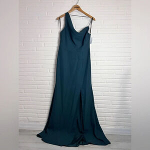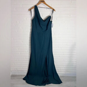 After Six ONE SHOULDER DRAPED COWL NECK MAXI DRESS IN EVERGREEN, Size 10