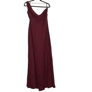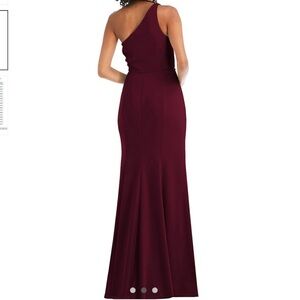 Brand new After Six One-Shoulder Draped Cowl-Neck Maxi Dress in Cabernet Red Radiate a flirty, casual look with this asymmetrical maxi dress, featuring an elegant one shoulder draped cowl and made of a soft crepe fabric. Lending an all-occasion style, this dress is designed with a flowing modified trumpet skirt, complete with a side slit for an alluring touch. Side zip closure.