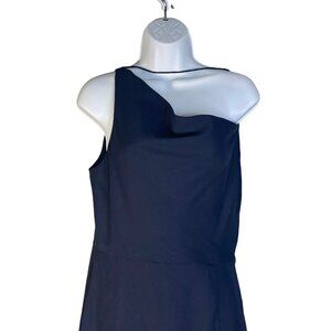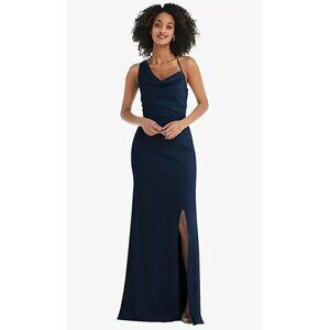 After Six One-shoulder Draped Cowl-neck Maxi Dress In Midnight Navy Size 8R