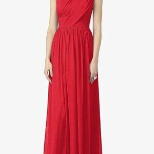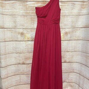 After Six Parisian Red K505 One Shoulder Chiffon Shirred Front Slit Maxi Gown