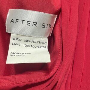 Make a bold statement at your next formal event with this stunning After Six Parisian Red K505 One Shoulder Chiffon Shirred Front Slit Maxi Dress. The lux chiffon material flows elegantly as you walk, while the one shoulder neckline adds a touch of sophistication. The dress features a solid pattern and a sleeveless design, with a side slit and zipper closure for convenience.