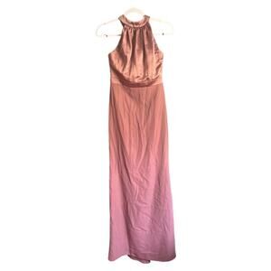 After Six Pink Satin Halter Maxi Gown Dress Formal Bridesmaid 4R