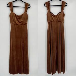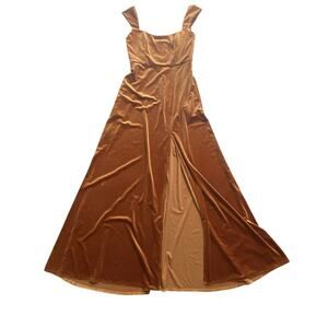 After Six Women's Golden Almond Brown Velvet Off Shoulder Maxi Dress Size 10