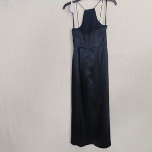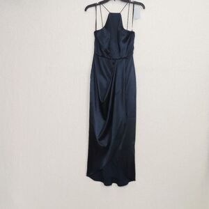 After Six 6829 Stretch Midnight Navy Charmeuse Halter Tulip Skirt Midi Dress 0R