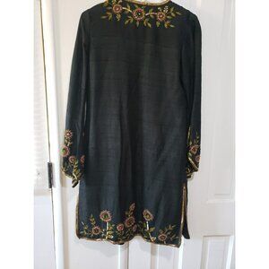 Aftershock Silk Beaded Jacket Duster Vintage Y2K Black Bell Sleeves S Fairy Boho
