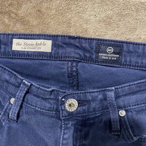 Ag Adriano Goldschmied 26R The Stevie Ankle Slim Straight Jeans Solid Navy Dark