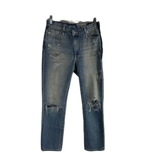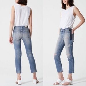 Ag Adriano Goldschmied Blue The Isabelle Side Zip High Rise Straight Crop Jeans.