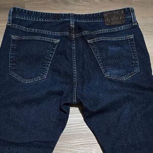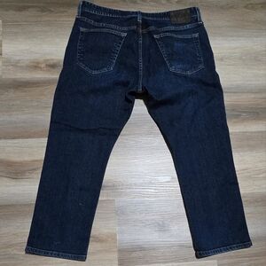 In pre-owned condition, some discoloration, Dark wash, Slim Straight, Stretch, Classis Casual, Ag Adriano Goldschmied Everette Slim Straight Men's Denim Jeans, Size 36.