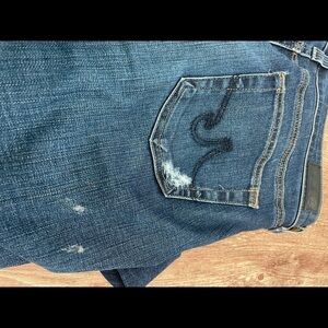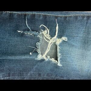 Preowned condition: There is some extra distressing at the rips and a small spot on the back/side, please see images